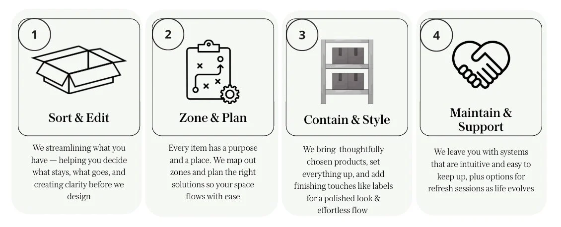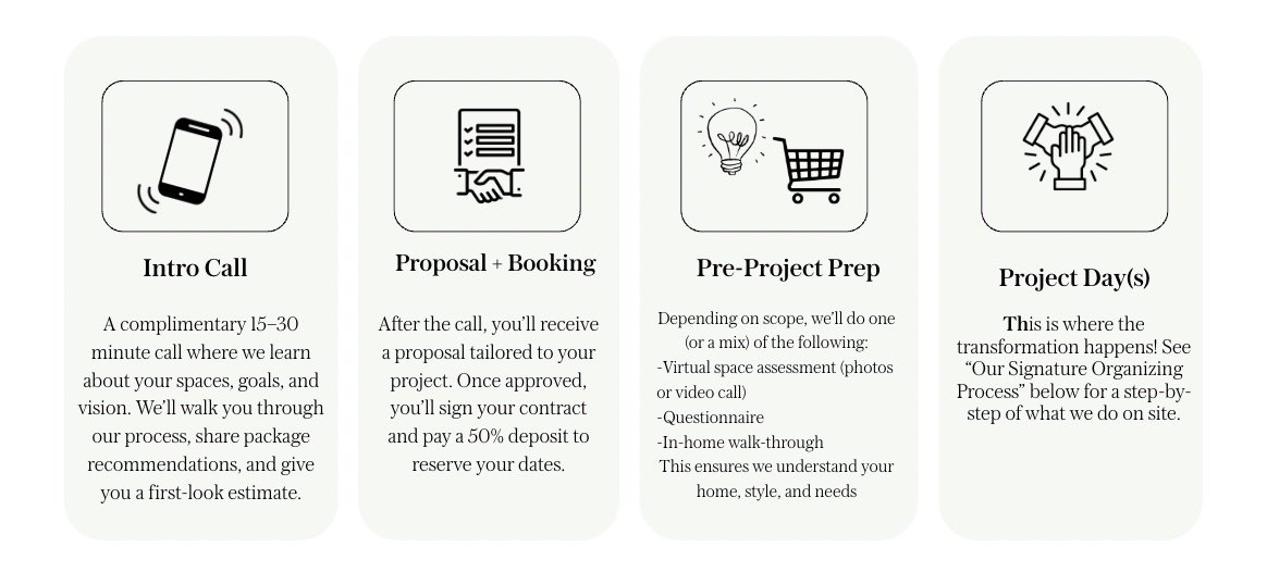 Every project with Space Haven follows a thoughtful, step-by-step flow. Whether we’re transforming one room in a day or designing whole-home systems, we guide you through a proven process that makes the work clear, efficient, and transformative